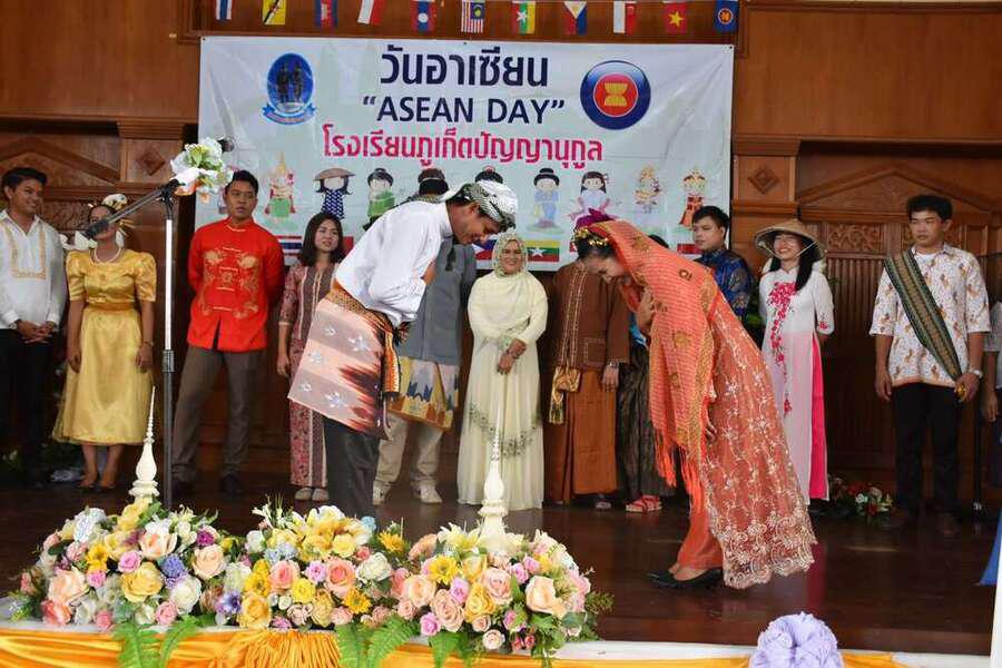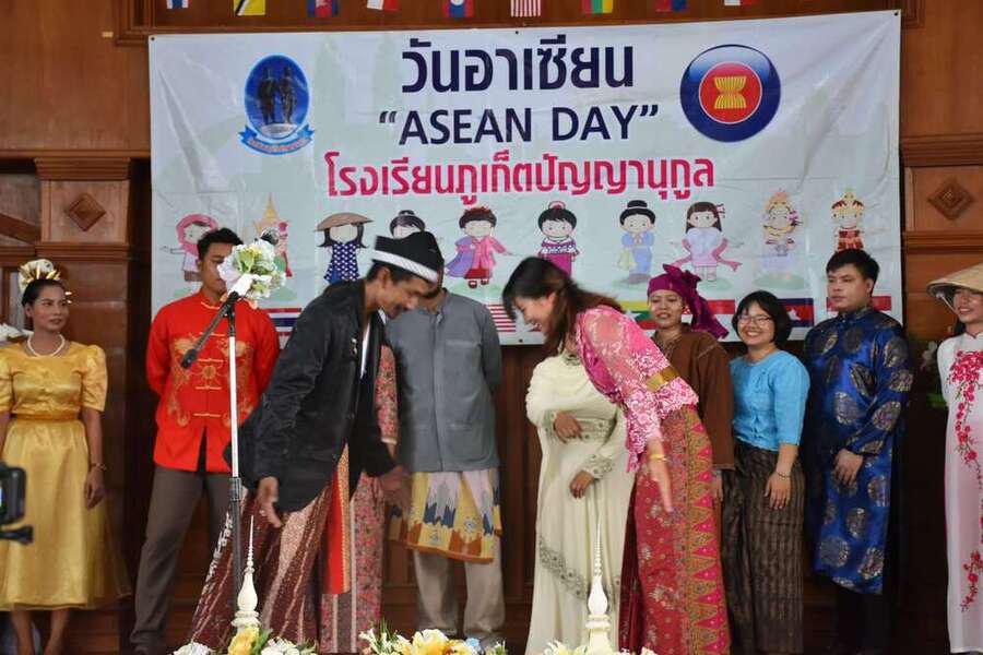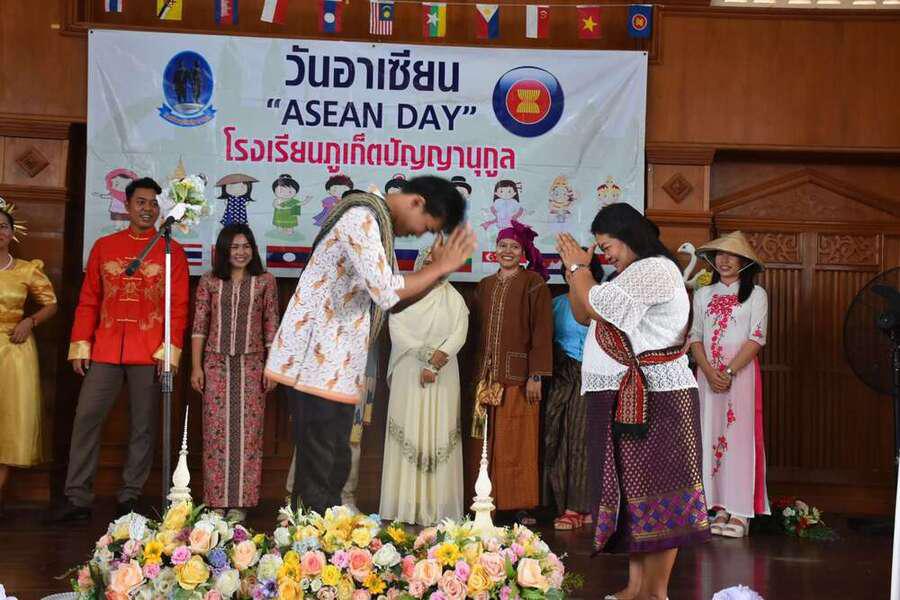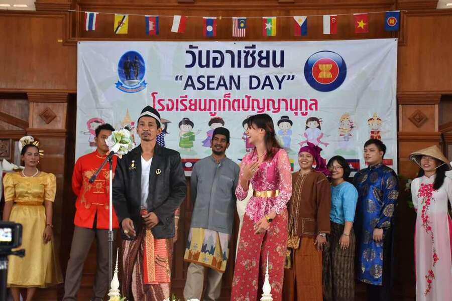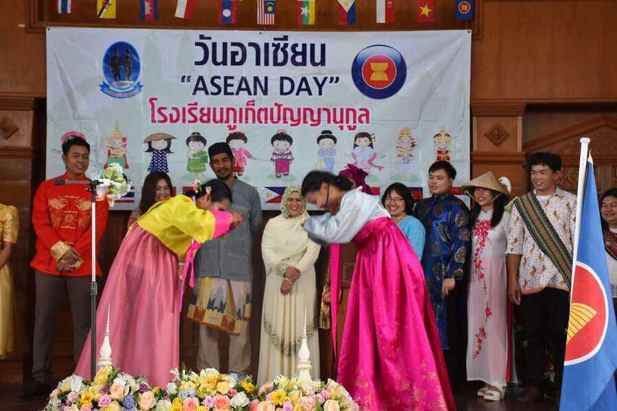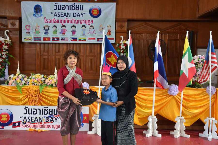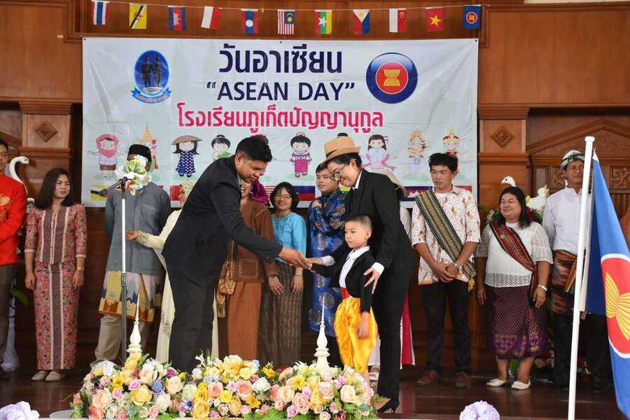 กิจกรรม วันอาเซียน (ASEAN DAY) ปีการศึกษา 2562 วันที่ 8 สิงหาคม 2562 โรงเรียนภูเก็ตปัญญานุกูล ได้จัดกิจกรรมวันอาเซียน (ASEAN DAY) ขึ้นซึ่งเป็นปีแห่งการส่งเสริมวัฒนธรรมอาเซียน ซึ่งในการจัดกิจกรรมในครั้งนี้ เพื่อส่งเสริมให้นักเรียนมีความรู้ความเข้าใจเกี่ยวกับประชาคมอาเซียน และเรียนรู้วัฒนธรรมที่แตกต่างหลากหลายของอาเซียน สู่การยอมรับวัฒนธรรมที่แตกต่าง อันเป็นพื้นฐานในการเป็นพลเมืองอาเซียนที่ยั่งยืน ในงานมีกิจกรรม การให้ความรู้เกี่ยวกับประชาคมอาเซียน การมอบรางวัลแก่นักเรียนที่ได้รับรางวัลทักษะทางวิชาการกิจกรรมตลุยอาเซียน โดยมีการเรียนรู้สกุลเงิน และให้นักเรียนได้เรียนรู้ถึงอาหารประจำชาติของประเทศในสมาชิกอาเซียน กิจกรรมการแสดงของนักเรียน และการเดินแฟชั่นชุดประจำชาติของสามาชิกอาเซียน โดยมีนางนภาพร พรหมสร รองผู้อำนวยการโรงเรียนภูเก็ตปัญญานุกูล เป็นประธานในพิธี พร้อมด้วยคณะครู บุคลากร ร่วมแต่งกายในชุดประจำชาติต่างๆในอาเซียนร่วมพิธีเปิดนี้ด้วย S:0