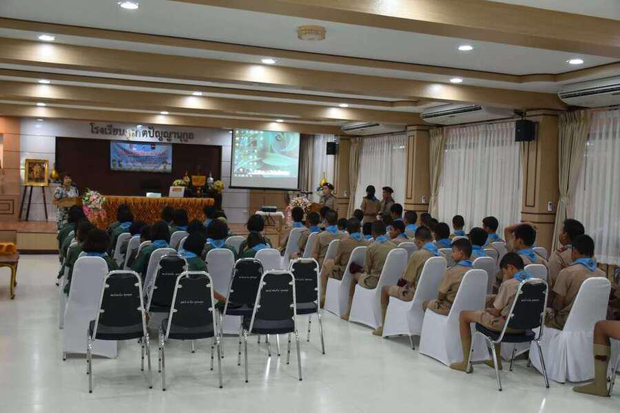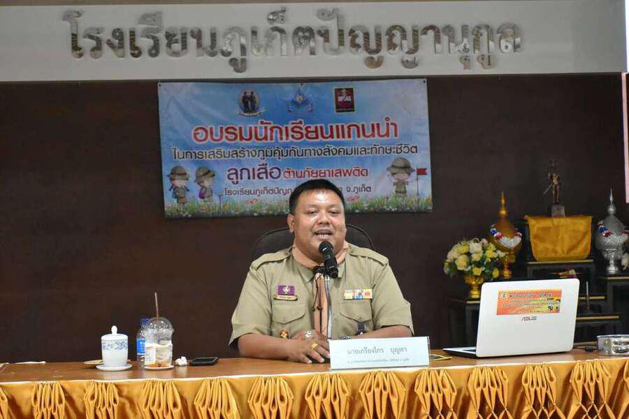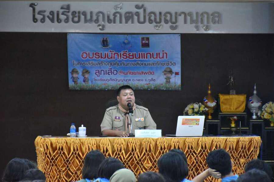 กิจกรรมค่ายนักเรียนแกนนำในการเสริมสร้างภูมิคุ้มกันทางสังคมและทักษะชีวิต ประจำปีการศึกษา 2562 : เมื่อวันที่ 26 สิงหาคม 2562 นางประกาทิพย์ ผาสุข ผู้อำนวยการโรงเรียนภูเก็ตปัญญานุกูล ให้เกียรติ เป็นประธานกล่าวเปิดงาน กิจกรรมค่ายนักเรียนแกนนำในการเสริมสร้างภูมิคุ้มกันทางสังคมและทักษะชีวิต ประจำปีการศึกษา 2562 ณ ห้องประชุม โรงเรียนภูเก็ตปัญญานุกูล ซึ่งเป็นกิจกรรมที่จัดขึ้นเนื่องด้วยโรงเรียนได้ตระหนักและเห็นความสำคัญการส่งเสริมและพัฒนาทักษะชีวิตในการพัฒนาเด็กและเยาวชนให้มีคุณภาพปราศจากปัญหายาเสพติด สามารถปรับตัวและจัดการกับปัญหาต่าง ๆ ได้อย่างมีประสิทธิผล ให้เป็นคนเก่ง คนดี และมีความสุข จึงได้จัดโครงการค่ายนักเรียนแกนนำสร้างภูมิคุ้มกันทางสังคมและทักษะชีวิต ขึ้น ระหว่างวันที่ 26 -27 สิงหาคม 2562 โดยมีกิจกรรมให้ความรู้ เพื่อเป็นวัคซีนชีวิตป้องกันและแก้ไขการลักขโมย การป้องกันและแก้ปัญหาเกมส์และสื่ออนไลน์ การจัดการอารมณ์กับความเครียด การสร้างสัมพันธภาพที่ดีกับผู้อื่น เพศวิถี (การป้องกันและแก้ปัญหาเรื่องเพศในวัยเรียน) และการป้องกันและแก้ปัญหาการตั้งครรภ์ในวัยเรียน ซึ่งจะเป็นภูมิคุ้มกันให้กับนักเรียน ให้สามารถดำรงตนให้อยู่ได้ในสภาพสังคมปัจจุบันที่มีการเปลี่ยนแปลงอย่างรวดเร็ว และสามารถใช้วิจารณญาณในการตั้งรับกับกระแสสังคมยุคใหม่ ปรับตัว รู้เท่าทัน ปฏิบัติตนอยู่ในสังคมได้อย่างเหมาะสมและมีความสุข S:0