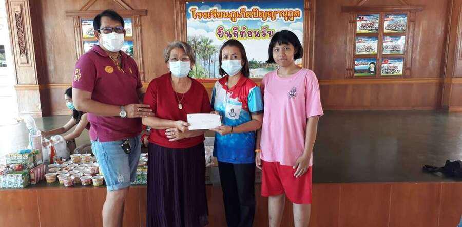 คุณมนตรี ไกรศรีสมบัติ และครอบครัว เลี้ยงอาหารว่าง ได้แก่ขนมจีบ ลูกชิ้น และนม ให้กับนักเรียนโรงเรียนภูเก็ตปัญญานุกูล