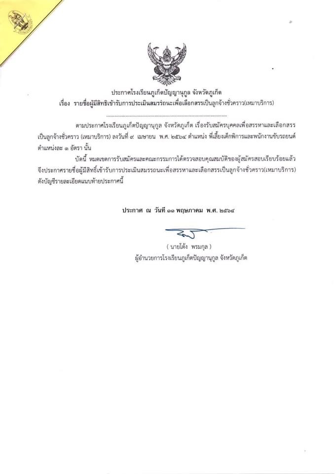 ผู้ที่มีรายชื่อตามแนบประกาศ ให้เข้ารับการประเมินสมรรถนะ ในวันที่ ๑๓ พฤษภาคม ๒๕๖๔ เวลา ๐๙.๐๐ น ณ. ห้องประชุมโรงเรียนภูเก็ตปัญญานุกูล