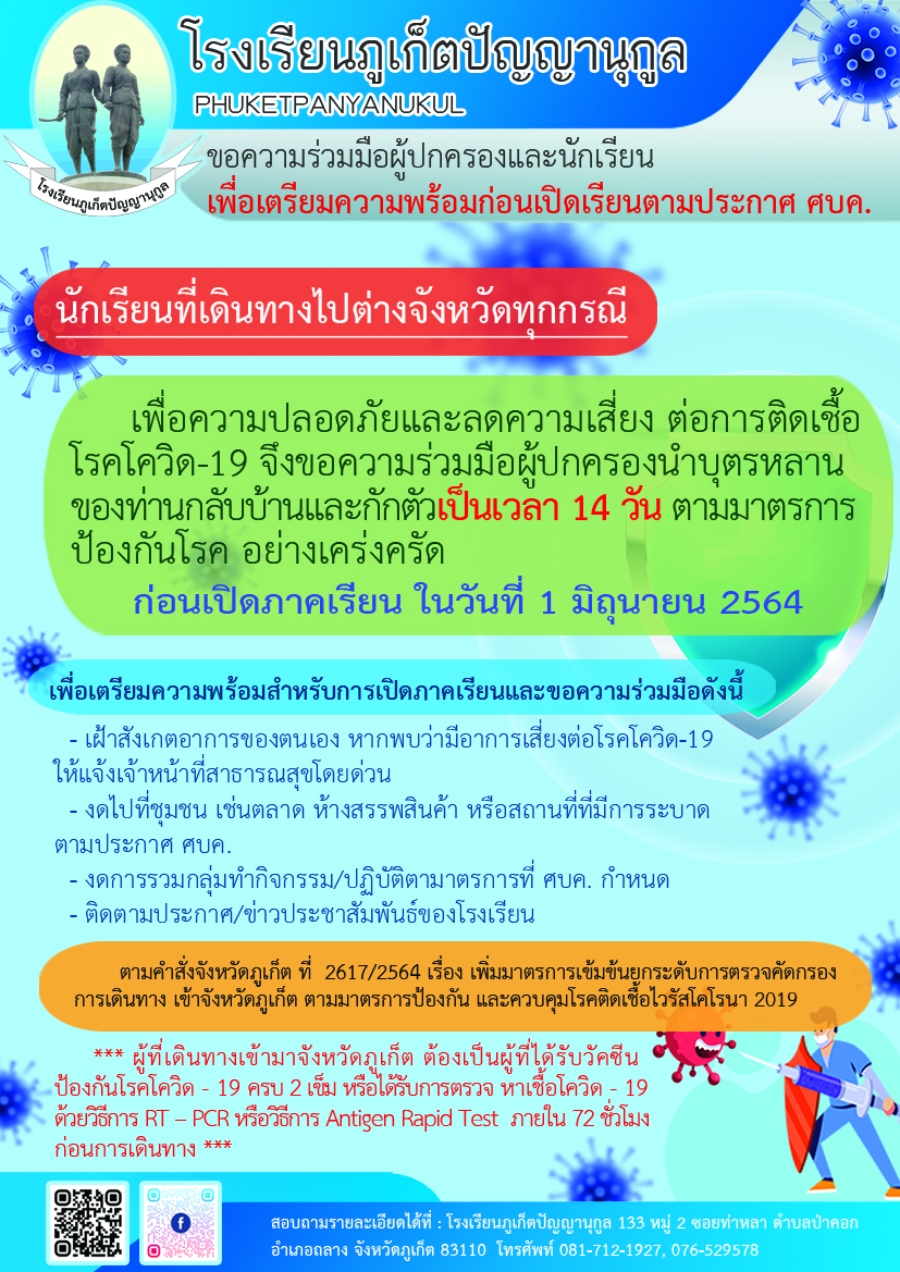 ขอความร่วมมือผู้ปกครองและนักเรียน เพื่อเตรียมความพร้อมก่อนเปิดเรียนตามประกาศ ศบค.