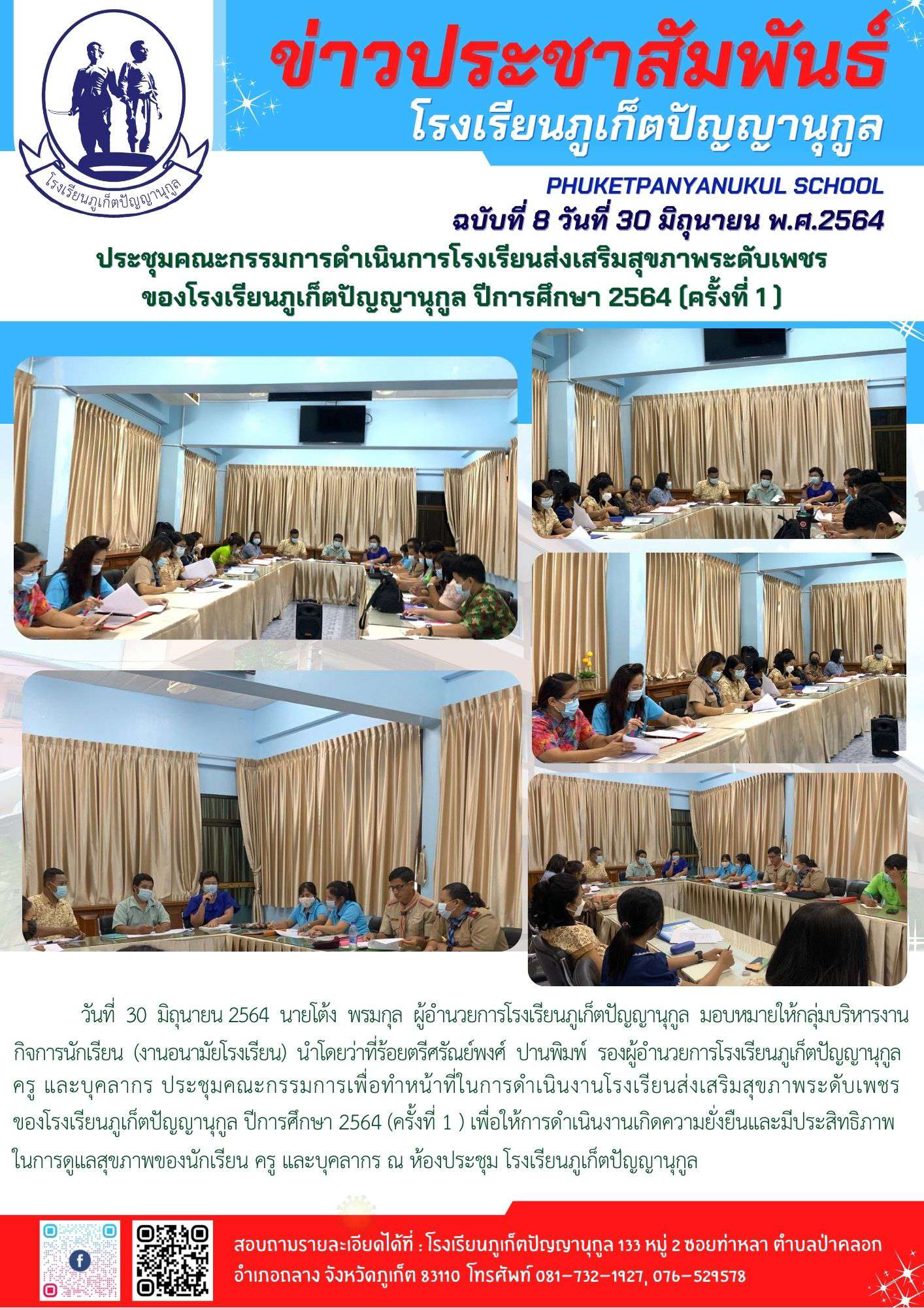 ประชุมคณะกรรมการดำเนินการโรงเรียนส่งเสริมสุขภาพระดับเพชร ของโรงเรียนภูเก็ตปัญญานุกูล ปีการศึกษา 2564 (ครั้งที่ 1 )