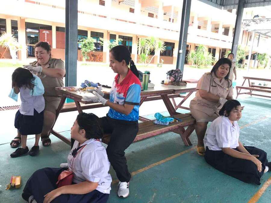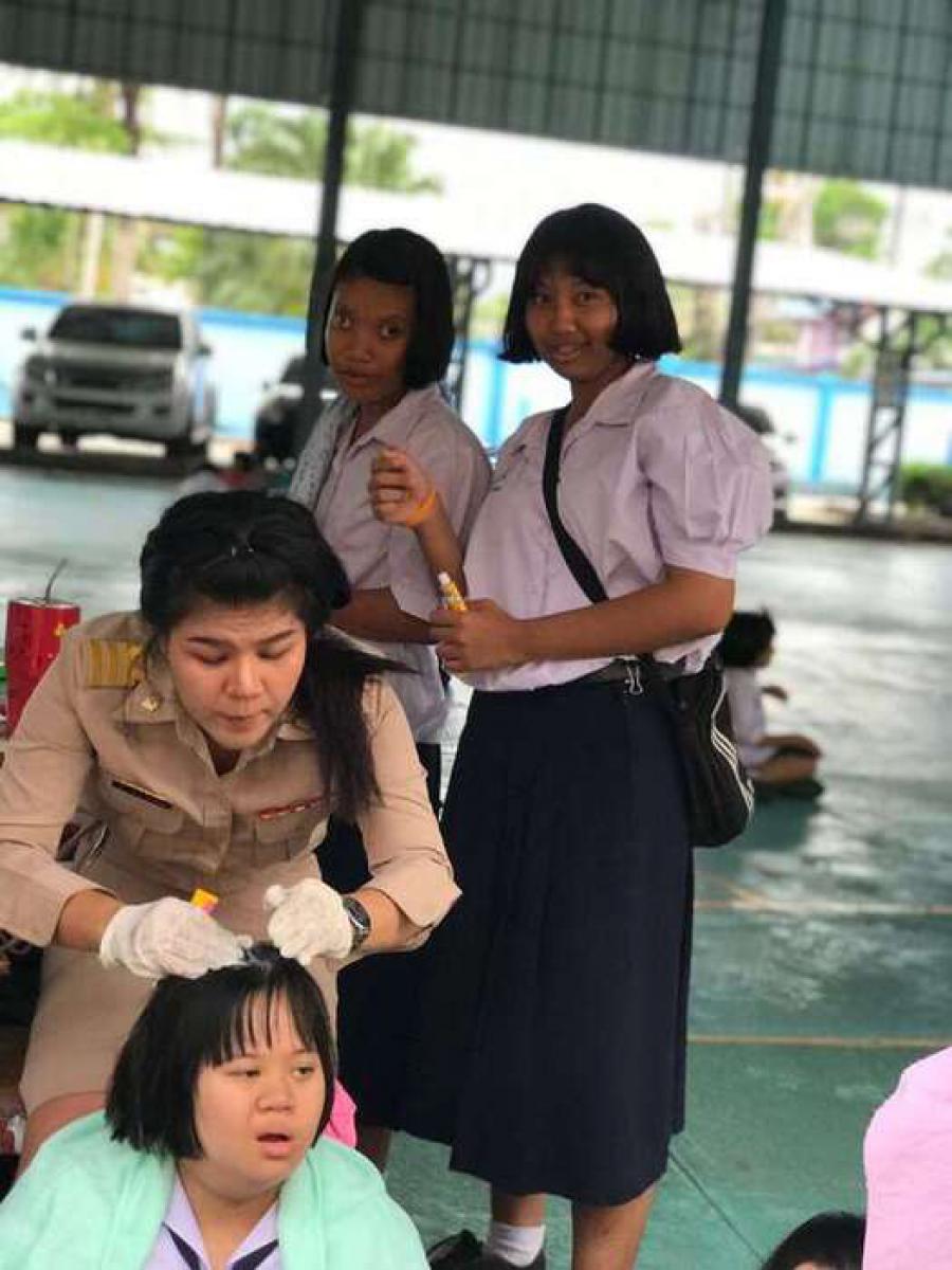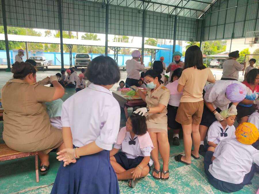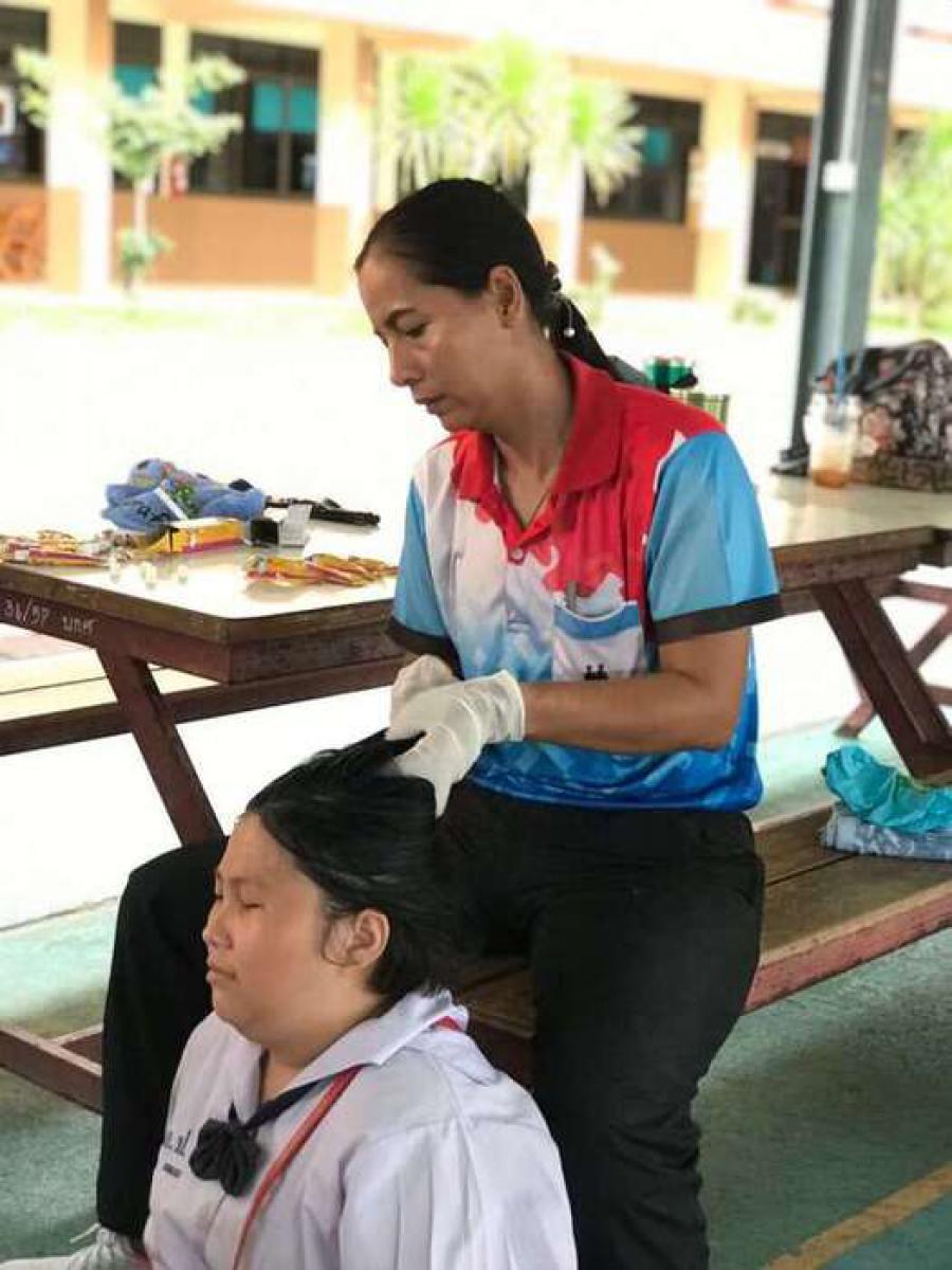 งานอนามัยโรงเรียนภูเก็ตปัญญานุกูล ดำเนินงานกำจัดเหาให้กับนักเรียนหญิง ให้ครูเวรประจำวัน ครูเรือนนอน พี่เลี้ยง และแม่บ้านเรือนนอน ร่วมกำจัดเหาให้กับนักเรียนโรงเรียนภูเก็ตปัญญานุกูล S:0